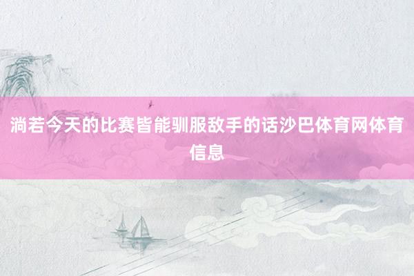 淌若今天的比赛皆能驯服敌手的话沙巴体育网体育信息