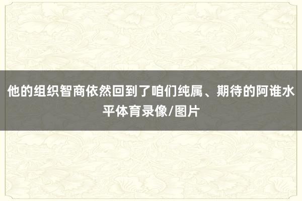 他的组织智商依然回到了咱们纯属、期待的阿谁水平体育录像/图片