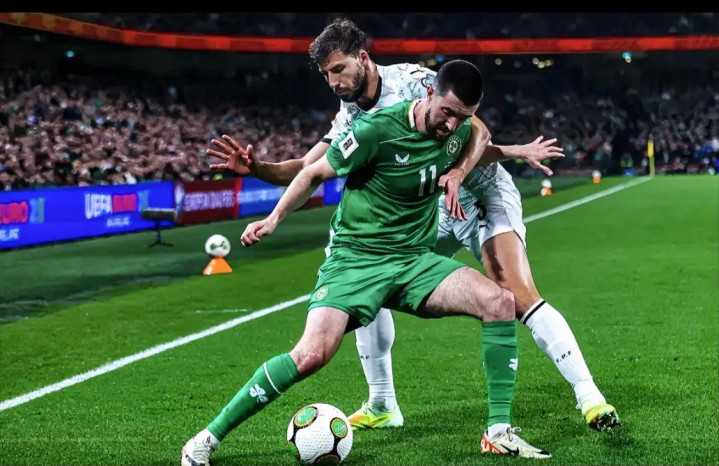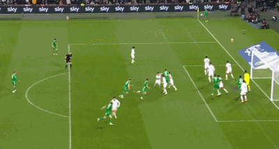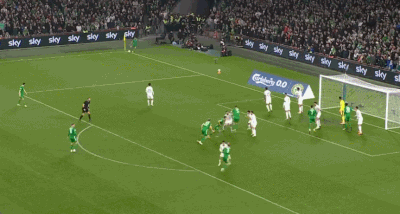 比赛第17分钟,爱尔兰开出角球,斯凯尔斯头球摆渡,帕罗特完成破门!爱尔兰1-0葡萄牙!