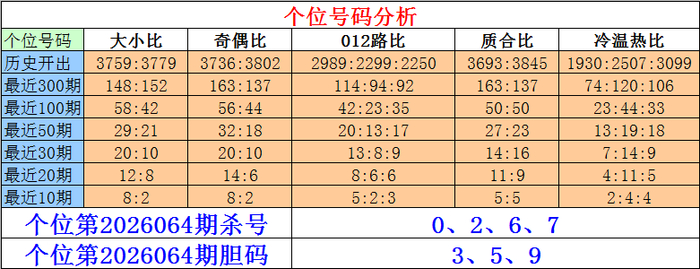 罗列三个位第2026064期杀号:0、2、6、7